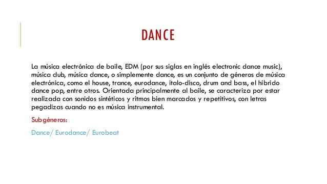 música dance, o simplemente dance, es un conjunto de géneros de música
