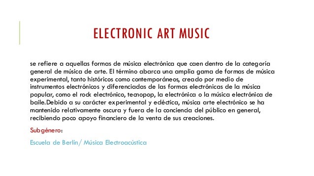 creaciones. Subgénero: Escuela de Berlín/ Música Electroacústica.