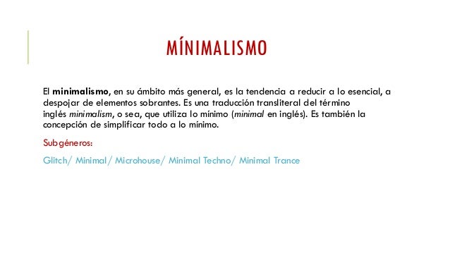 concepción de simplificar todo a lo mínimo. Subgéneros: Glitch/ Minimal/