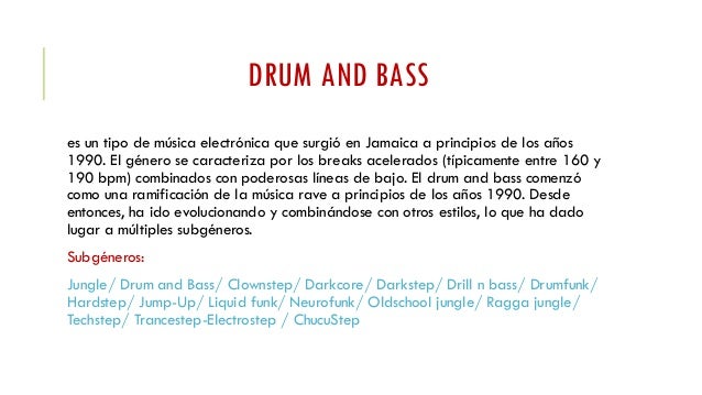 combinados con poderosas líneas de bajo. El drum and bass comenzó como una