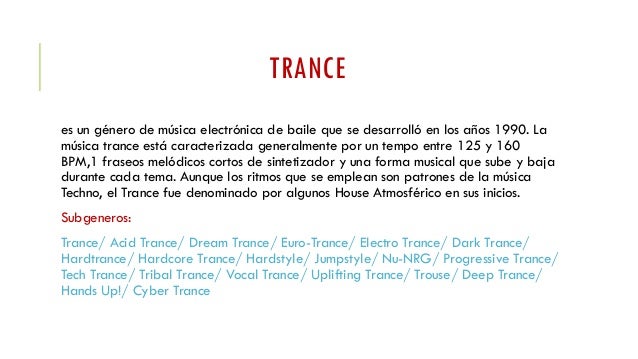 electrónica de baile que se desarrolló en los años 1990. La música trance está
