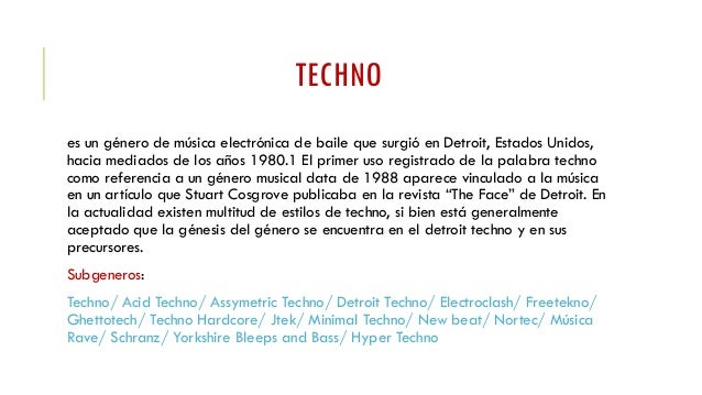 los años 1980.1 El primer uso registrado de la palabra techno como referencia a